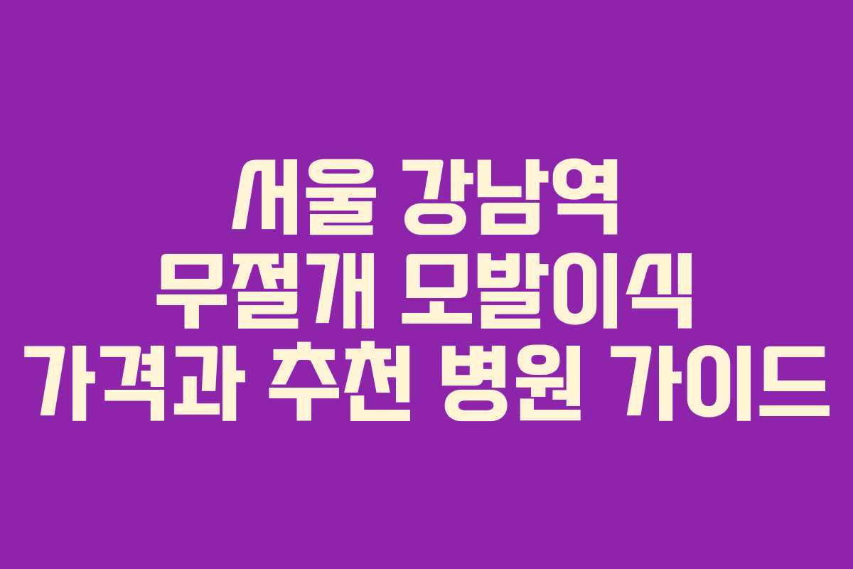 서울 강남역에서 무절개 모발이식에 대한 관심이 높아지고 있습니다. 최신 기술을 통해 보다 편안하게 모발을 되찾고 싶은 분들을 위해, 가격 정보와 추천 병원을 종합적으로 안내드립니다.