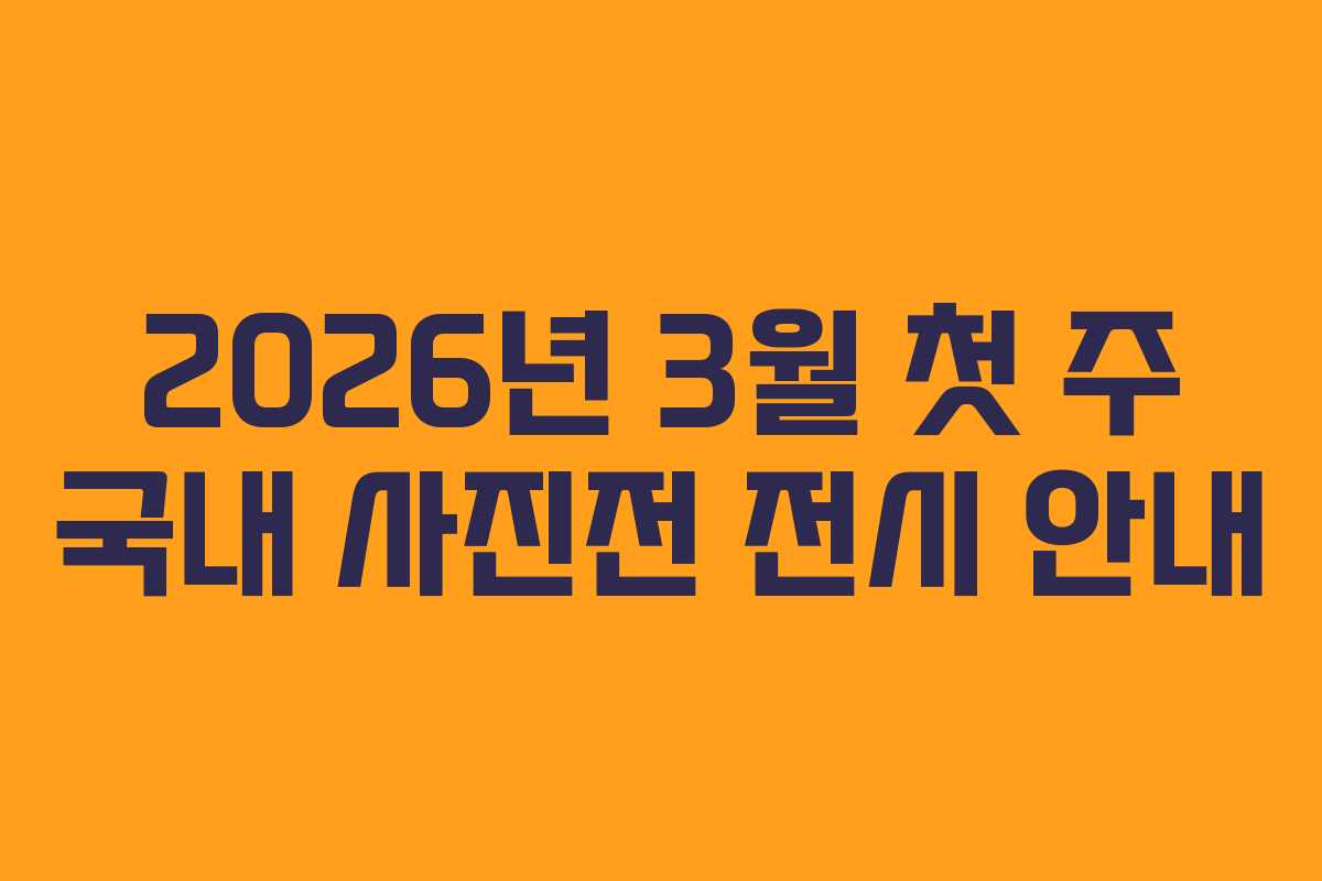 2026년 3월 1주차 동안 한국의 여러 갤러리와 전시장에서 진행되는 다양한 사진전이 예정되어 있습니다. 이 정보는 예고 없이 변경될 수 있으며, 새로운 전시 일정이나 수정 사항은 제공된 이메일을 통해 업데이트 가능합니다.