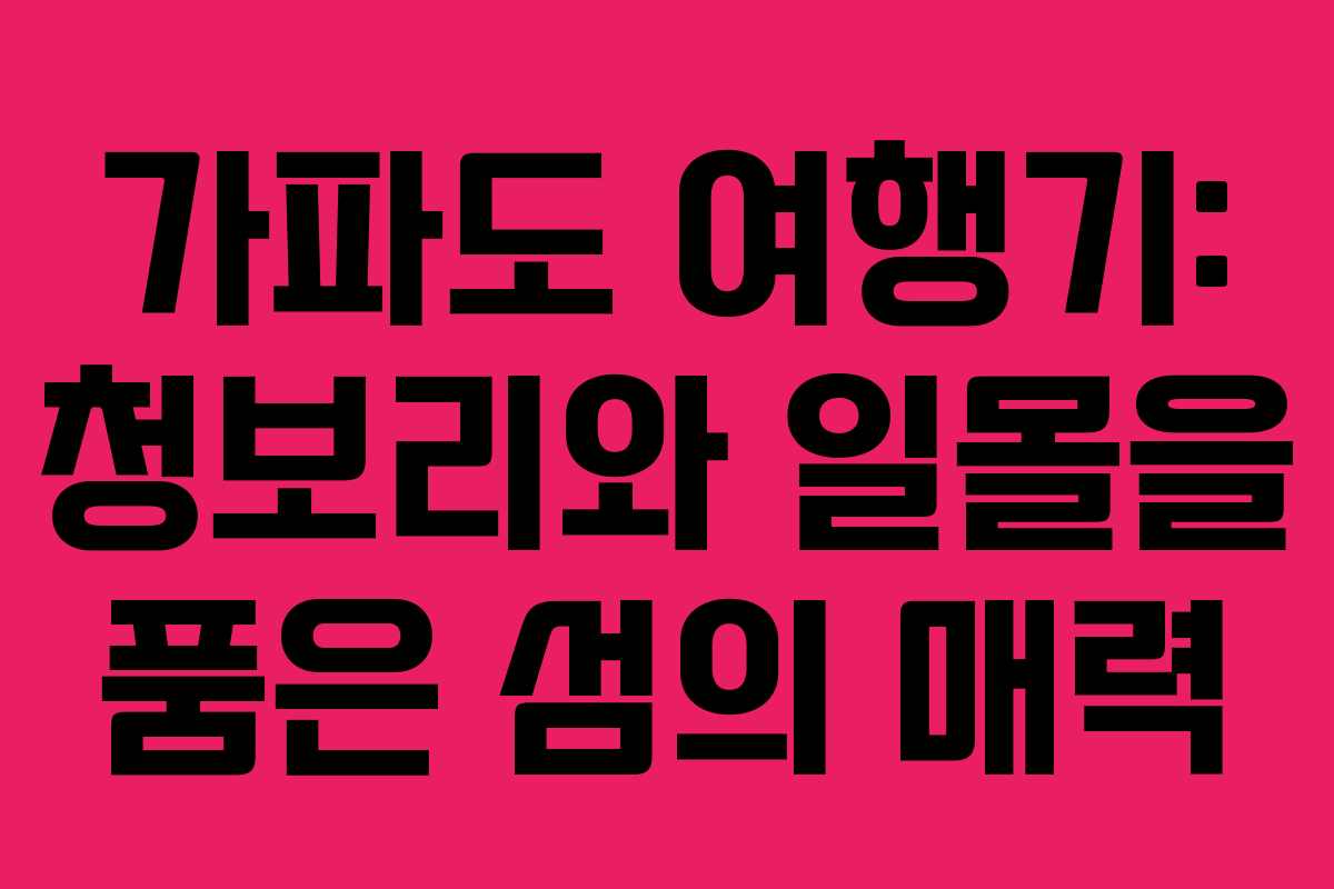 가파도는 제주도에서 비교적 덜 알려진 섬 중 하나지만, 그 매력은 두말할 필요가 없다. 이 작은 섬은 청보리와 맑은 바다, 그리고 환상적인 일몰로 방문객들에게 잊지 못할 경험을 선사한다. 이번 포스팅에서는 가파도를 여행하며 느꼈던 순간들을 생생히 전해주고자 한다.