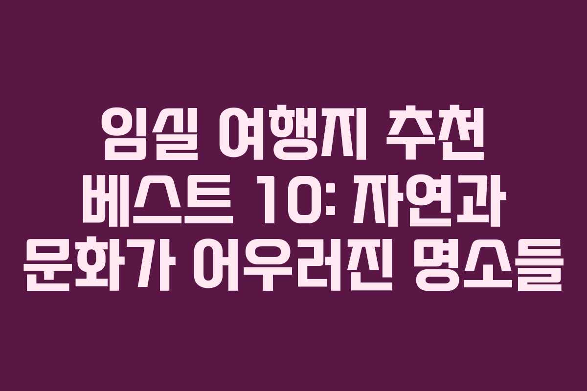임실은 전라북도의 중남부에 위치한 아름다운 지역으로, 자연경관과 역사적인 명소가 조화롭게 공존하는 곳이다. 이번 글에서는 임실에서 꼭 가봐야 할 여행지 베스트 10을 소개한다. 각 명소는 독특한 매력을 지니고 있어 방문객들에게 잊지 못할 경험을 선사할 것이다.