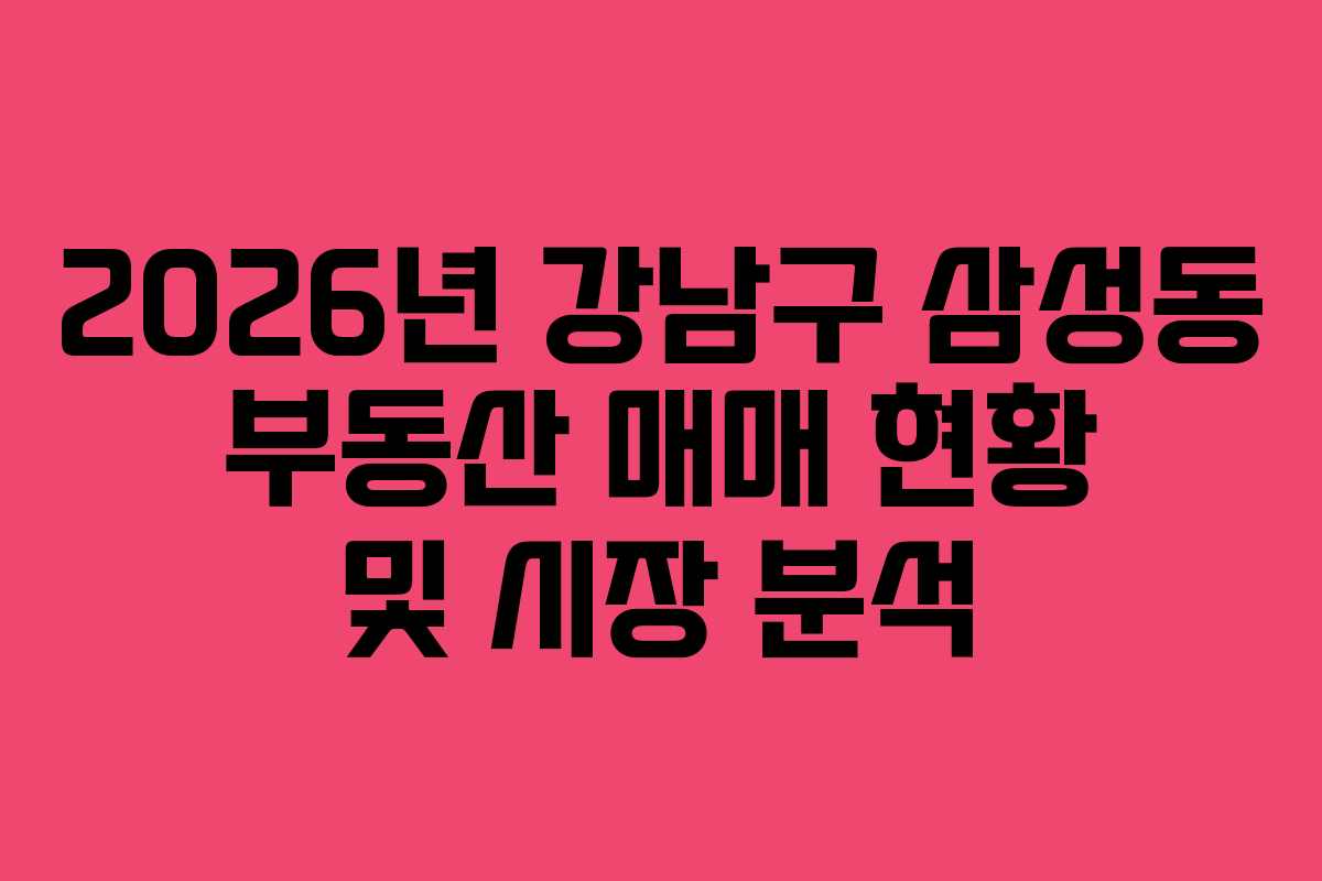 부동산 시장의 변동성이 지속되고 있는 가운데, 강남구 삼성동의 매매 사례는 특히 주목받고 있다. 최근의 거래 데이터를 토대로 2026년 기준의 시장 상황을 분석해 보겠다. 본 글은 삼성동의 부동산 거래에 대한 상세한 정보를 제공하며, 독자들이 보다 나은 투자 결정을 내릴 수 있도록 돕는 것을 목적으로 한다.