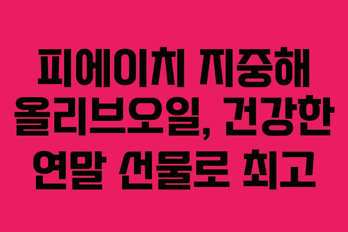 연말이 다가오면 많은 사람들이 선물에 대해 고민하게 됩니다. 특히 건강에 신경 쓰는 시기가 되면서 더욱 의미 있는 선물이 필요해지죠. 저도 최근에 피에이치 지중해 올리브오일을 선물받고 그 매력에 푹 빠지게 되었습니다. 이 제품은 캡슐 형태로 되어 있어 매우 간편하게 섭취할 수 있어 건강을 생각하는 분들에게 적합합니다. 이번 포스팅에서는 피에이치 지중해 올리브오일의 특징과 장점을 알아보도록 하겠습니다.
