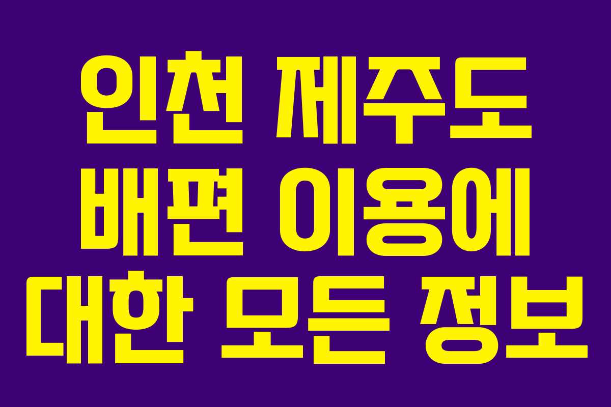 인천 제주도 배편 이용을 위한 실전 가이드