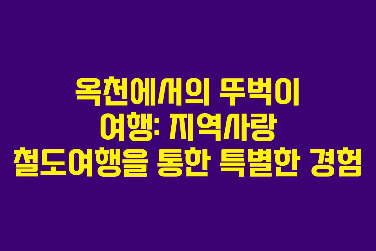 옥천에서의 뚜벅이 여행: 지역사랑 철도여행을 통한 특별한 경험