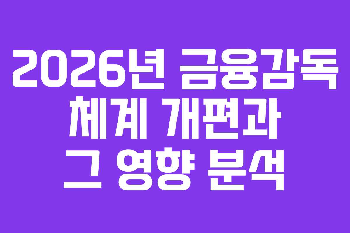 2026년의 금융감독 체계 개편은 단순한 조직 변경이 아닌, 금융시장의 안정성과 효율성을 높이기 위한 필수적인 과정이다. 금융위원회와 금융감독원이 협력하여 보다 효과적인 감독 체계를 마련해야 하며, 이는 결국 금융 소비자와 시장의 신뢰를 높이는 데 기여할 것이다. 이러한 과정을 통해 미래의 금융 환경에 적합한 감독 체계를 확립할 수 있을 것이다.