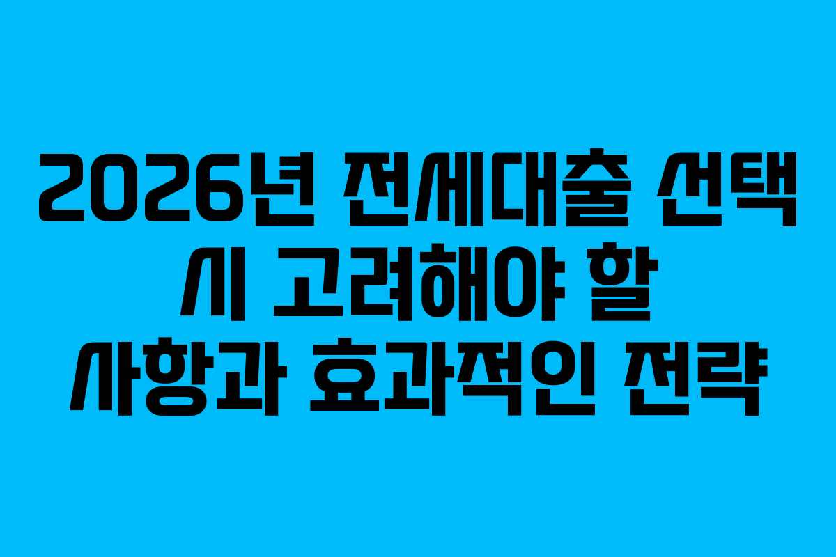 2026년 전세대출 선택 시 고려해야 할 사항과 효과적인 전략