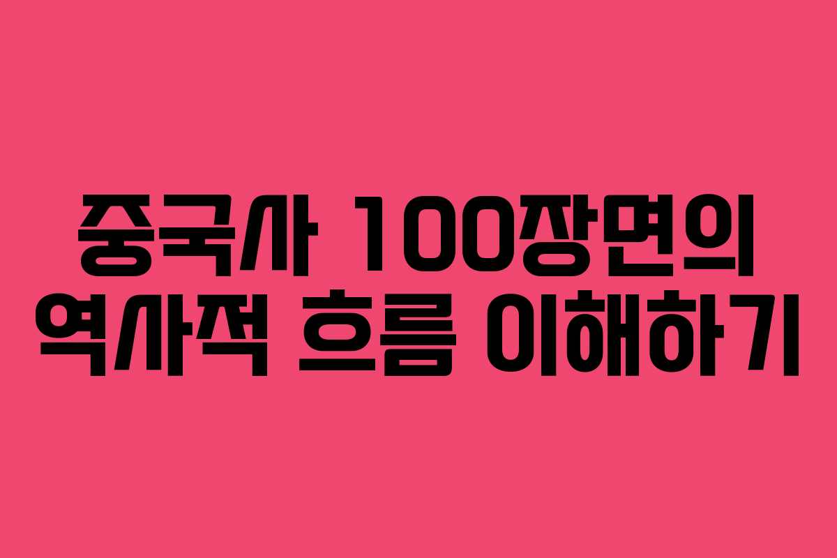 중국사의 흐름을 파악하는 데 도움을 줄 수 있는 책이 필요할 때, ‘중국사 100장면’은 그 요구를 충족시키기 위해 집필되었다. 이 책은 중국의 선사시대부터 현대까지 의미 있는 역사적 사건들을 100개의 장면으로 나누어 정리하여, 독자들이 보다 쉽게 중국의 역사와 문화를 이해할 수 있도록 돕고자 했다. 특히, 이 책은 우리 역사와 동아시아의 맥락에서 중국사를 바라보는 중요한 시각을 제공한다.