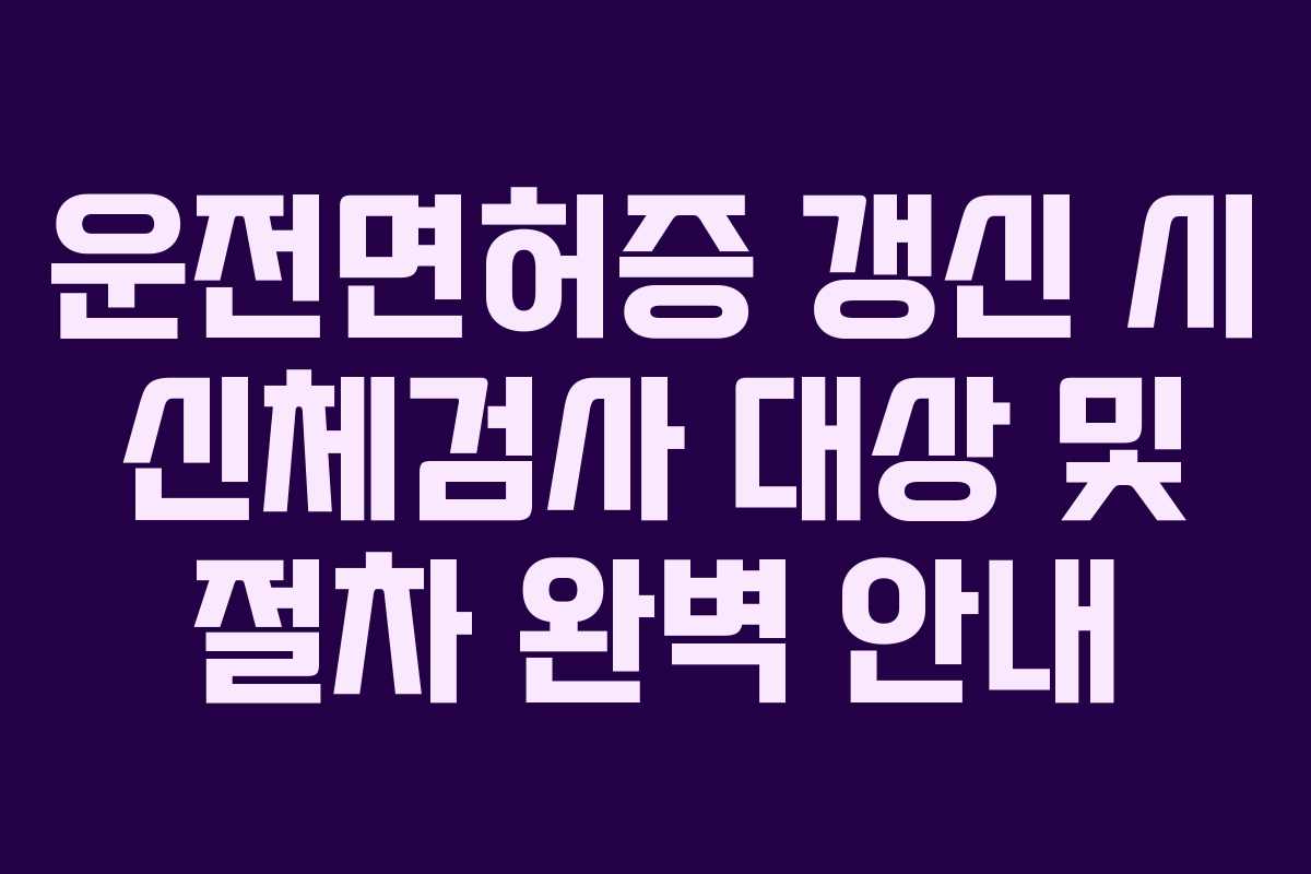 신체검사는 갱신 시기에 맞춰 받아야 하며, 고령 운전자는 매번 갱신 시 검사를 권장합니다. 특정 질병이 있는 경우에도 정기적으로 검사를 받는 것이 좋습니다. -