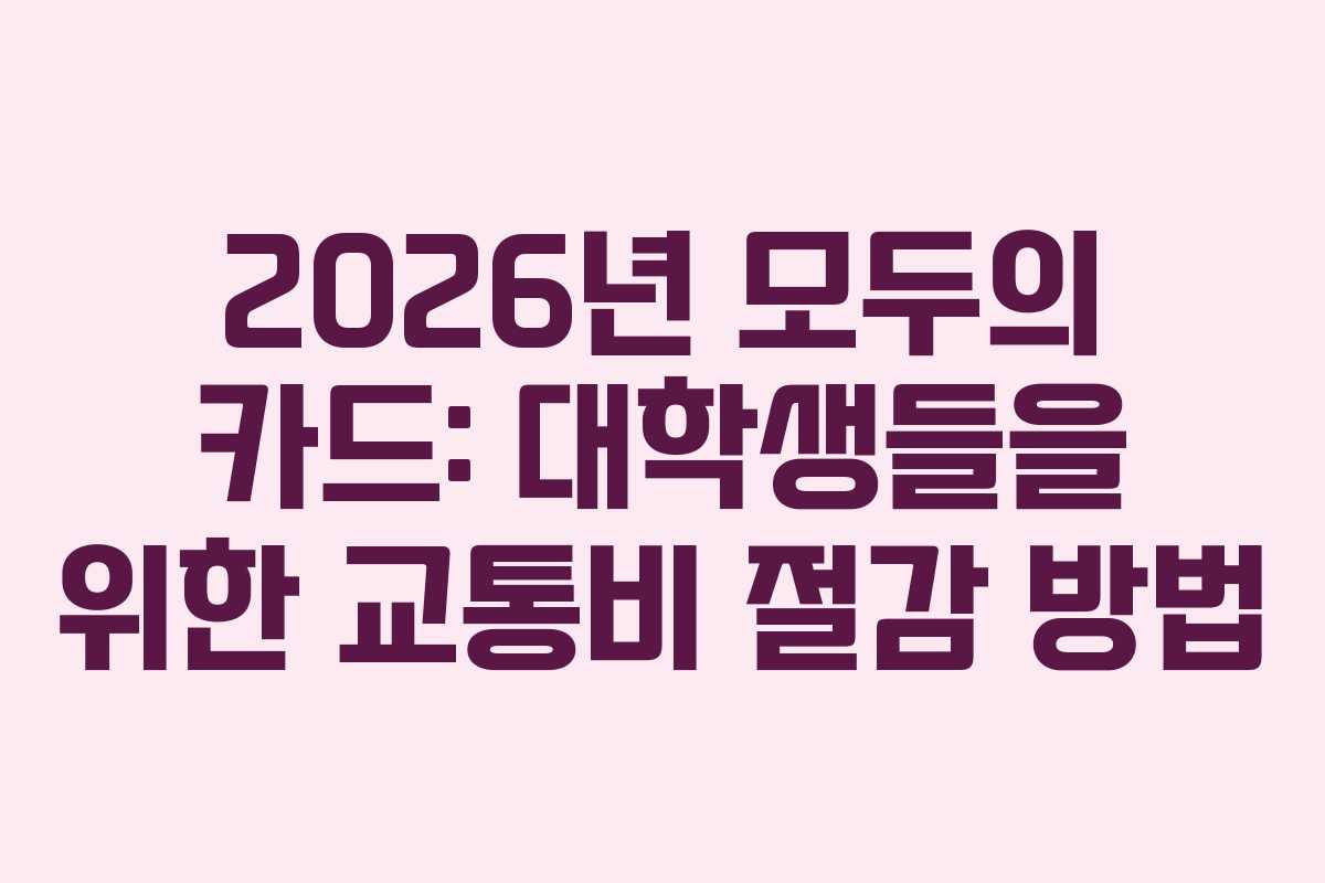 2026년부터 시행되는 모두의 카드에 대한 자세한 정보를 공유합니다. 이 카드는 대학생들에게 특히 유용한 혜택을 제공합니다. 많은 학생들이 대중교통을 이용하면서 발생하는 교통비 부담을 덜 수 있는 기회를 가질 수 있게 되었습니다. 특히 수도권 통학생들에게는 더욱 의미 있는 내용이 될 것입니다.