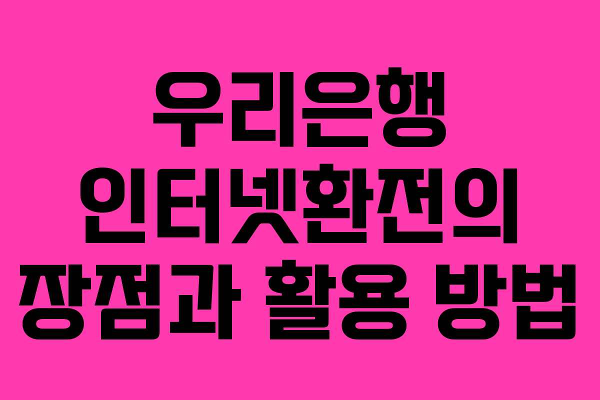 우리은행 인터넷환전은 고객의 다양한 요구를 충족시키기 위해 지속적으로 발전하고 있습니다. 시간과 비용을 절약하며 더욱 효율적인 외환 거래를 할 수 있도록 돕는 이 서비스는 많은 고객들에게 큰 도움이 되기를 바랍니다. 우리은행 인터넷환전 서비스를 통해 외환 거래의 편리함을 경험해 보세요.