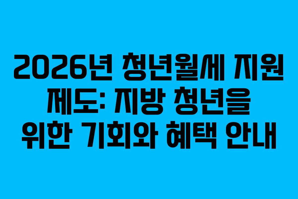2026년 청년월세 지원 제도: 지방 청년을 위한 기회와 혜택 안내