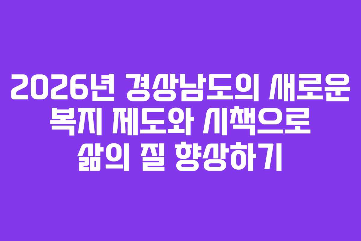 2026년 경상남도는 도민의 삶의 질을 높이기 위해 다양한 시책을 발표하였다. 이 글에서는 이번에 발표된 104개의 제도 중 특히 복지와 보건 분야에서의 주요 시책들을 살펴보며, 변화의 필요성과 이들이 도민에게 미칠 긍정적 영향을 알아보려 한다.