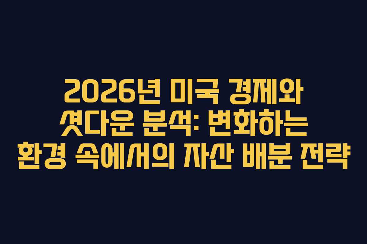 2026년에는 셧다운이 종료되고 유동성이 재공급되면서 경제 성장률이 반등할 가능성이 높습니다. 다만, 전반적인 불확실성은 여전히 존재할 것입니다.