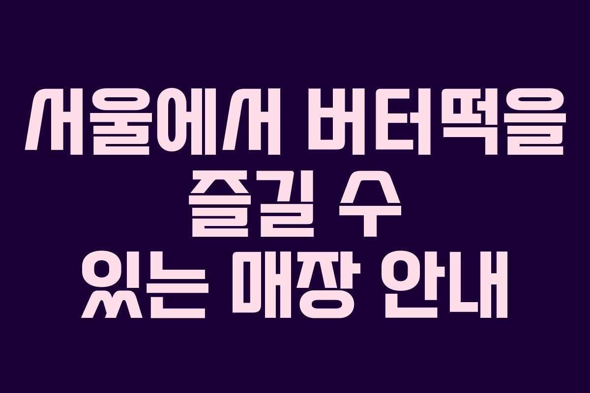 버터떡은 최근 많은 사람들에게 사랑받고 있는 디저트로, 서울에서도 다양한 매장에서 만나볼 수 있다. 각 매장의 특징을 잘 살펴보고 나만의 버터떡을 찾아보는 것도 즐거운 경험이 될 것이다.