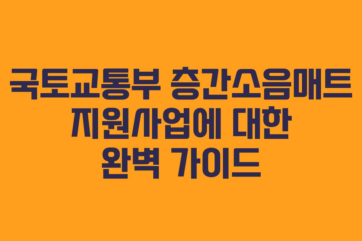 국토교통부의 층간소음매트 지원사업은 주거 공간에서 발생하는 층간소음을 줄이기 위한 중요한 정책입니다. 이 지원사업은 거주 중인 주택에 층간소음 저감매트를 설치하는 세대주를 대상으로 하며, 설치비 및 시공비를 저리 또는 무이자로 지원합니다. 본문에서는 2026년 기준으로 이 사업의 세부사항을 정리하여, 지원받고자 하는 이들이 놓치기 쉬운 부분들을 명확히 설명합니다.