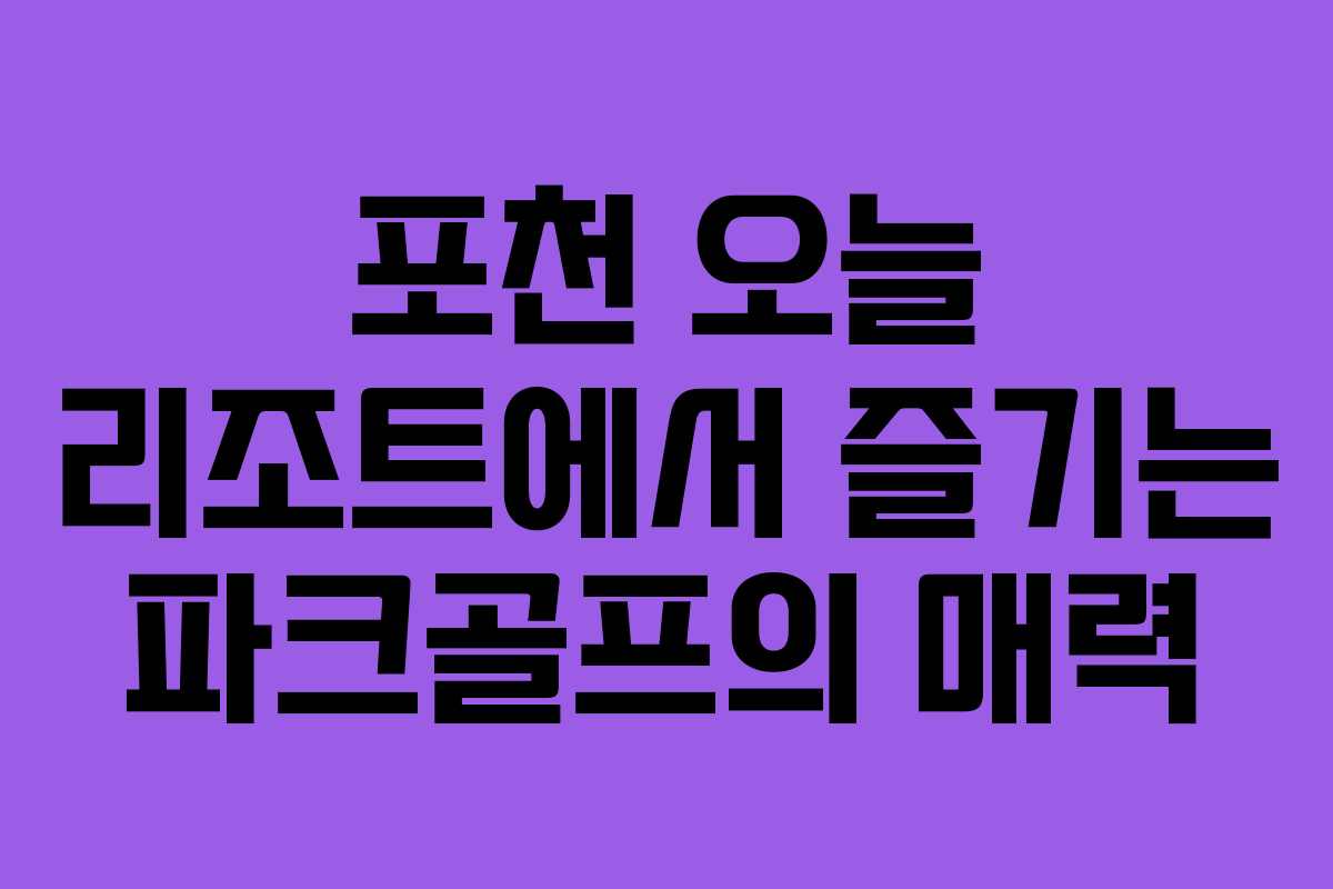 포천 오늘 리조트는 경기도 포천시 일동면에 위치해 있으며, 다양한 시설과 프로그램을 갖춘 곳입니다. 이곳은 파크골프장을 중심으로 대형 갈비촌 식당, 라이브 카페, 대형 교육장 등 다양한 시설이 마련되어 있습니다. 특히, 파크골프는 가족과 친구, 동료와 함께 즐기기에 적합한 스포츠로, 많은 사람들이 이곳을 찾아 즐거운 시간을 보내고 있습니다.