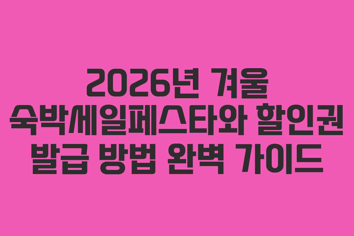 2026년 겨울 숙박세일페스타는 많은 여행자에게 알뜰한 여행을 제공할 수 있는 좋은 기회입니다. 선착순으로 제공되는 할인권을 통해 소중한 여행 계획을 더욱 알차게 만들어 보세요. 매일 오전 10시를 잊지 말고, 꼭 할인권을 발급받아 알뜰한 여행을 만끽하시기 바랍니다.