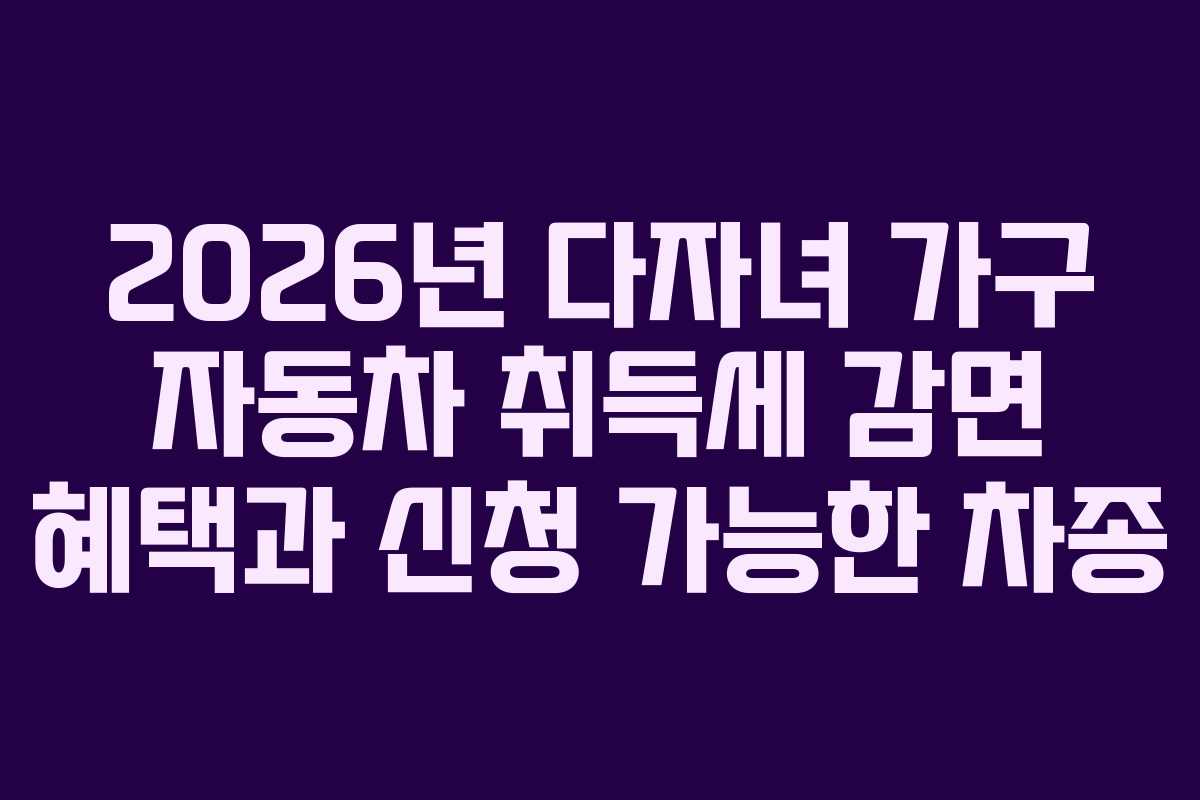 2026년에 적용되는 다자녀 가구의 자동차 취득세 감면 기준은 다음과 같습니다.