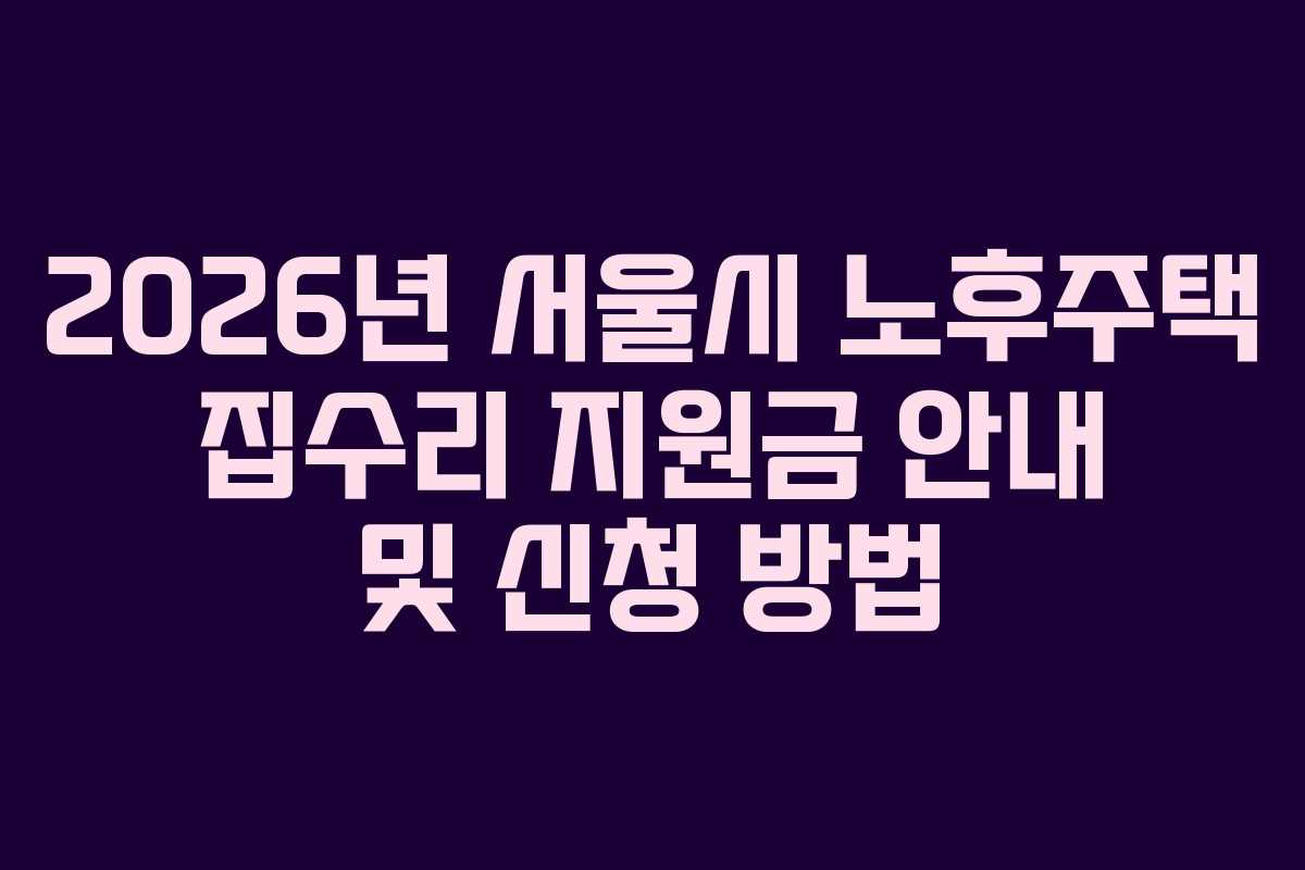 2026년 상반기 서울시는 저층 노후주택 거주자를 위한 집수리 지원 사업을 시행합니다. 이 사업은 주거 환경 개선을 목표로 하며, 최대 1,200만 원까지 지원받을 수 있습니다. 4월 신청이 시작되며, 주거 취약계층을 위한 맞춤형 지원이 특징입니다.