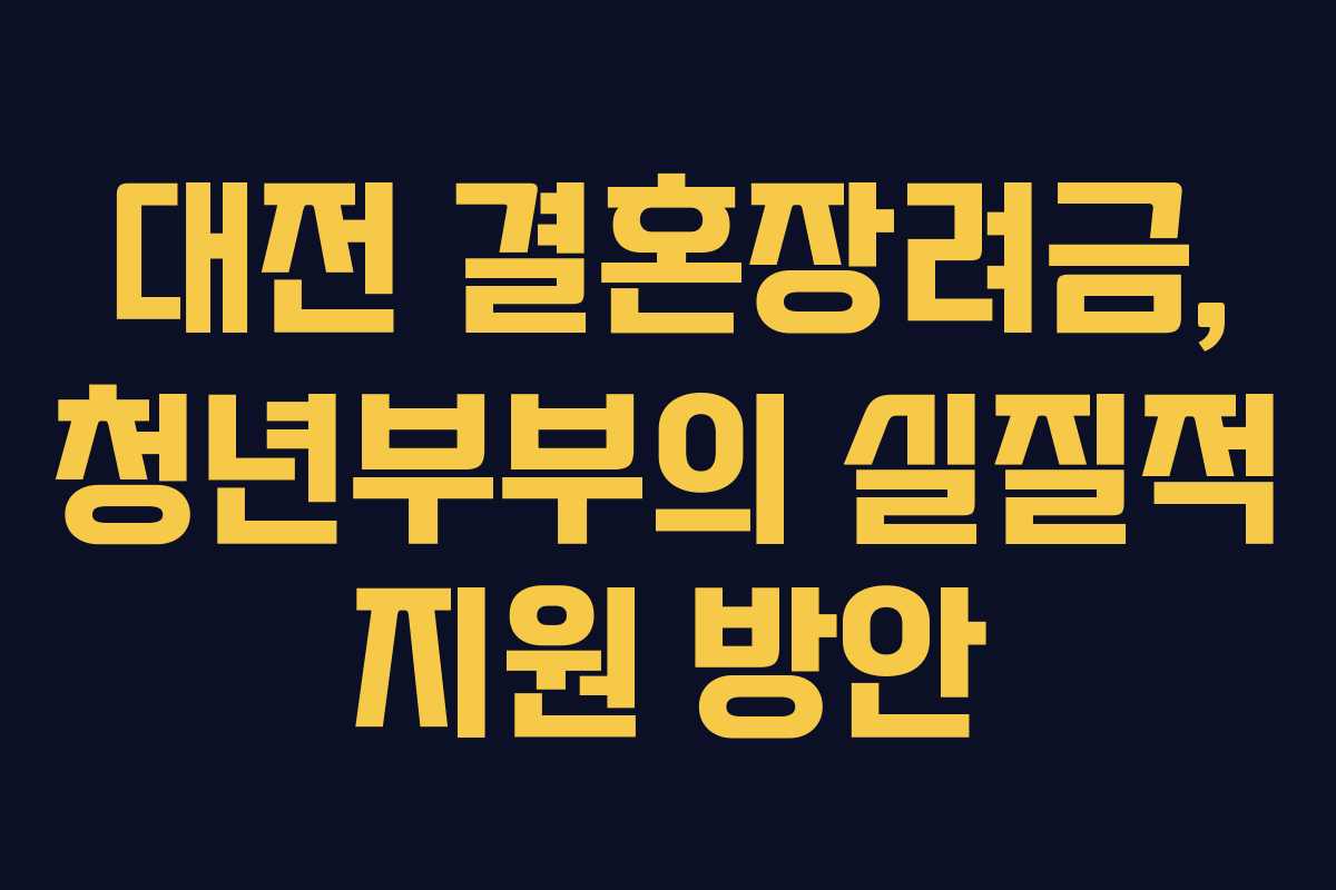 대전 결혼장려금, 청년부부의 실질적 지원 방안