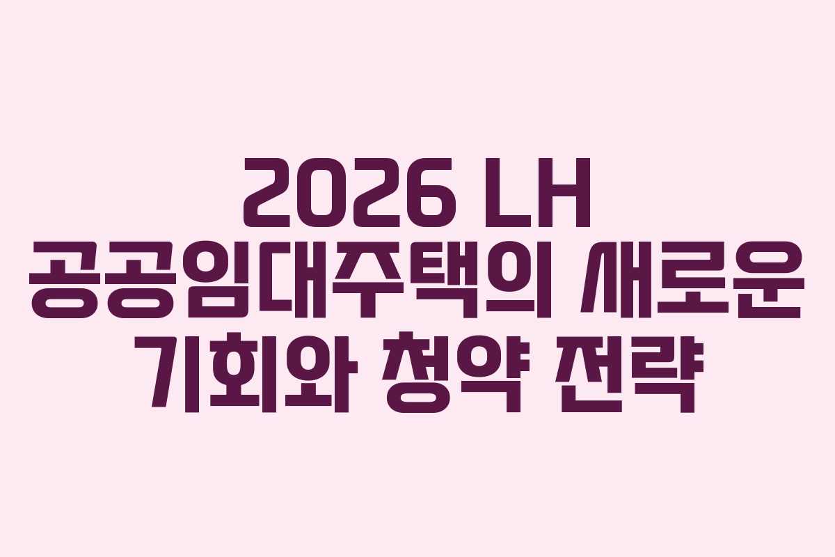 2026년의 LH 공공임대주택은 대출 한파 속에서 주거 안정성을 제공하는 중요한 선택지로 떠오르고 있습니다. 주거비 부담을 줄이고 안정적인 생활을 원하는 이들에게 큰 도움이 될 것입니다.