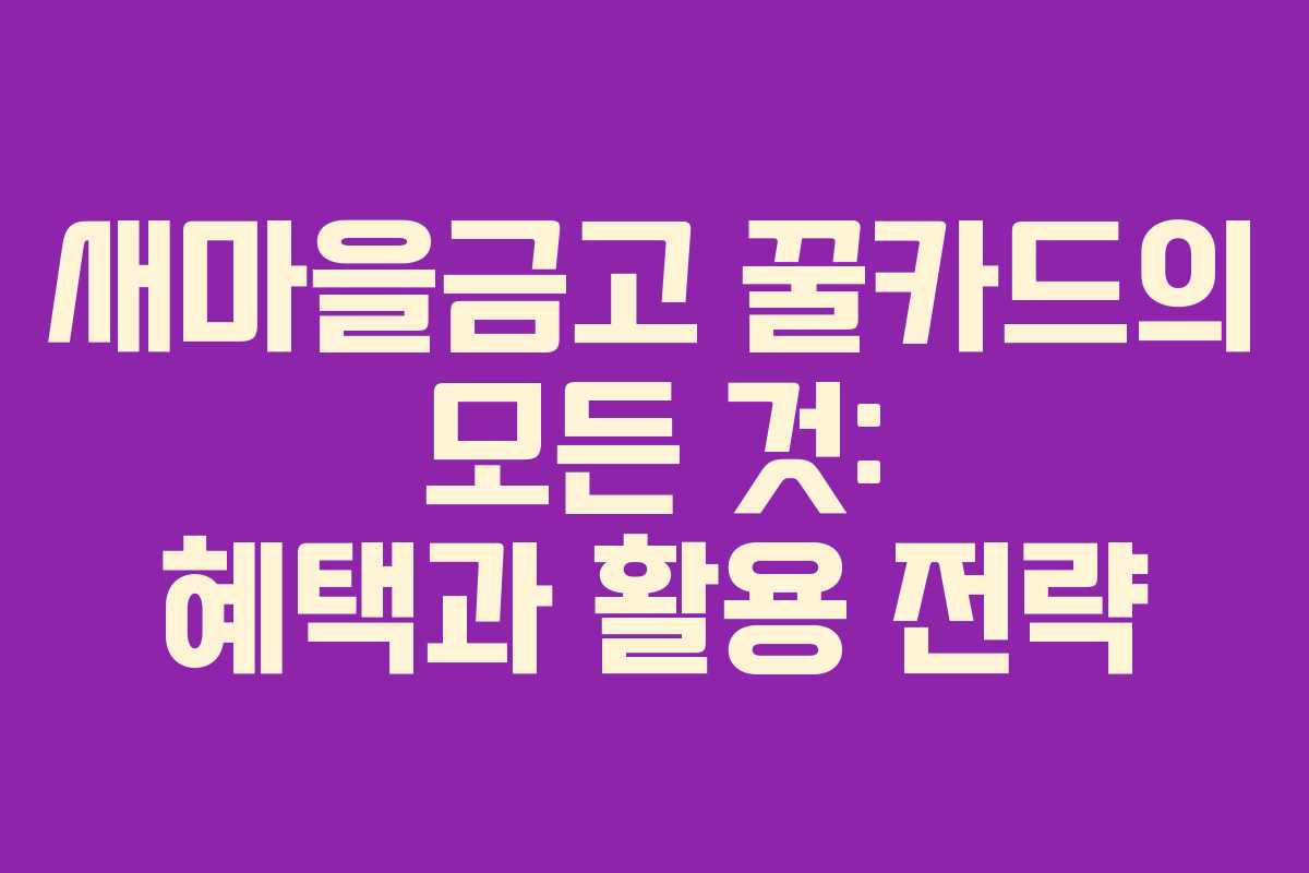 새마을금고 꿀카드의 모든 것: 혜택과 활용 전략