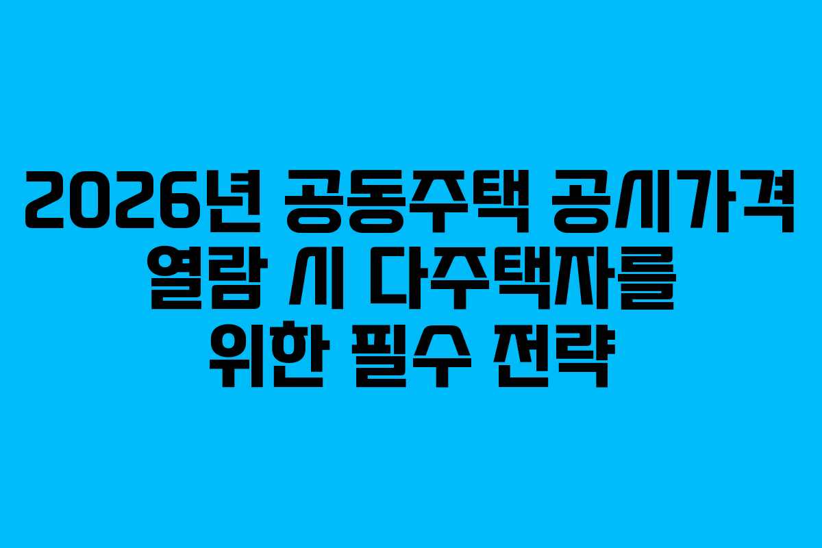 2026년 공시가격 발표는 다주택자에게 단순한 세금 고지서 이상의 의미를 가진다. 정부의 공시가격 산정 방식이 투명해지고 합리화됨에 따라 다주택자들도 데이터와 법률을 바탕으로 대응해야 한다. 국토교통부 ‘부동산공시가격알리미’ 웹사이트를 즐겨찾기 해두고, 열람이 시작되면 자신의 자산 상태를 즉시 점검하는 것이 중요하다. 변화하는 정책 속에서 자산을 지키기 위해서는 정확한 정보와 신속한 실행력이 필수적이다.
