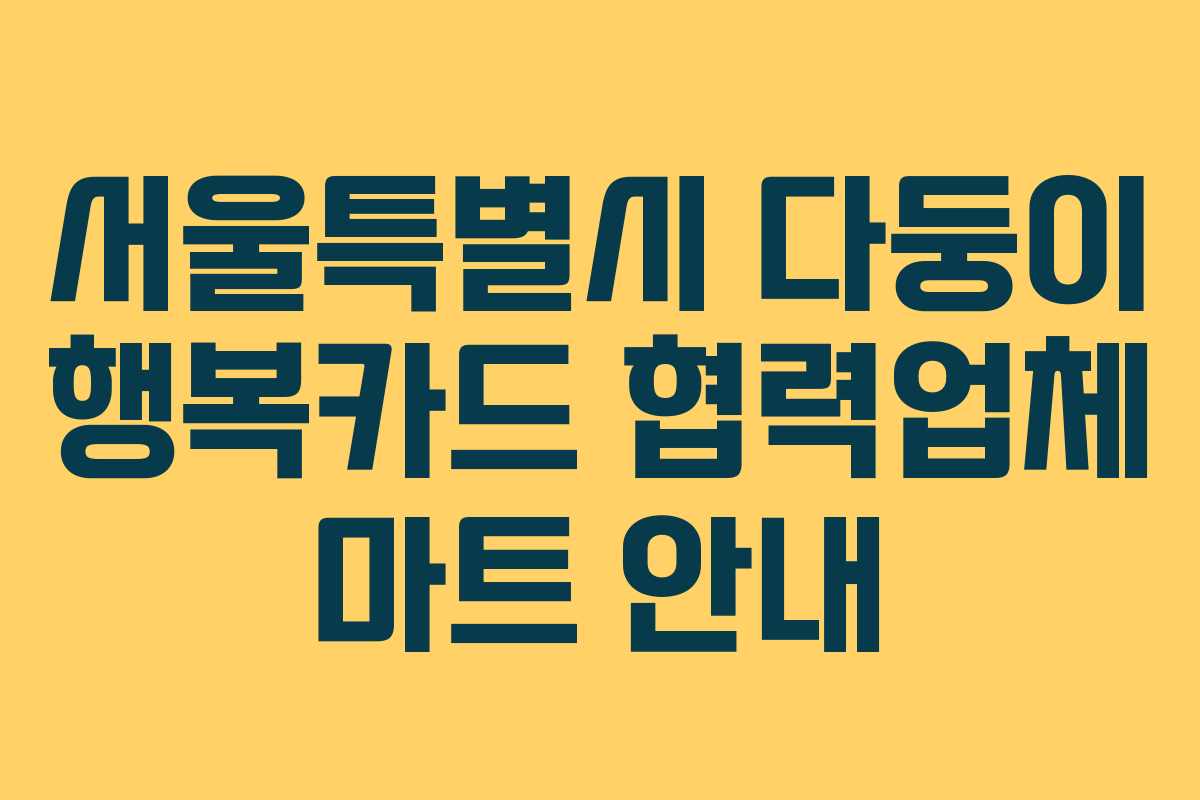 서울특별시에서 제공하는 다둥이 행복카드는 다자녀 가정의 경제적 부담을 줄이기 위해 여러 협력업체와 함께하는 할인 혜택을 제공합니다. 이 카드 소지자는 다양한 마트와 제과점에서 할인 혜택을 받을 수 있으며, 이를 통해 실질적인 비용 절감이 가능합니다. 본 문서에서는 2026년 기준으로 업데이트된 협력업체 리스트와 각 업체의 할인 내용에 대해 안내하겠습니다.