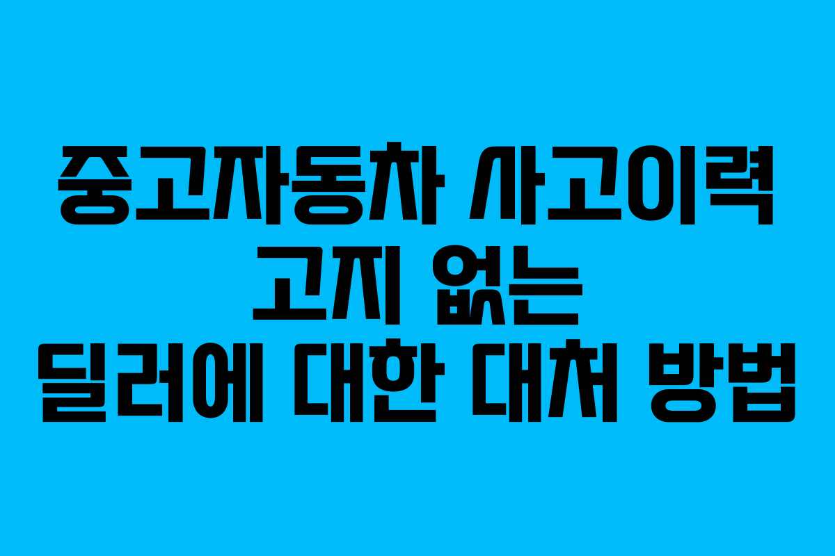 사고 이력을 고지하지 않은 중고차 매매 딜러에 대해 어떤 법적 책임이 있는지 파악하는 것이 중요합니다. 2026년 기준으로, 중고차 매매업체는 차량의 사고 이력을 소비자에게 투명하게 고지해야 할 의무가 있습니다. 이 법적 의무를 위반한 경우, 피해자는 법적 조치를 취할 수 있는 권리가 있습니다. 예를 들어, 중고차 매매업체가 소비자에게 제공한 ‘성능점검상태 기록부’의 내용이 사실과 다를 경우, 허위로 인해 발생한 손해에 대해 민원을 제기할 수 있습니다.