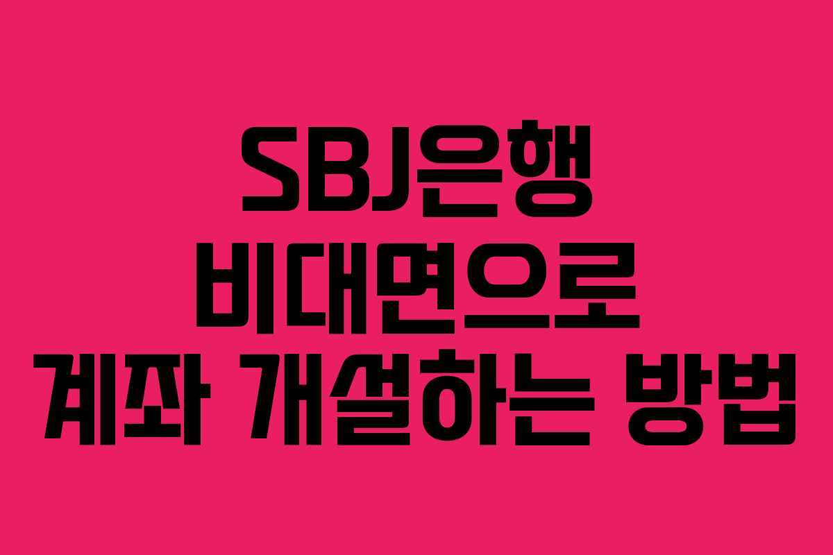 SBJ은행에서 비대면으로 계좌를 개설하는 과정은 매우 간편하고 효율적입니다. 이 글에서는 2026년 기준으로 SBJ은행의 장단점, 계좌 개설 대상, 필요한 준비물 및 구체적인 개설 방법을 안내합니다. 특히, 비대면으로 계좌를 개설할 수 있는 점이 많은 이용자들에게 큰 장점이 될 것입니다.
