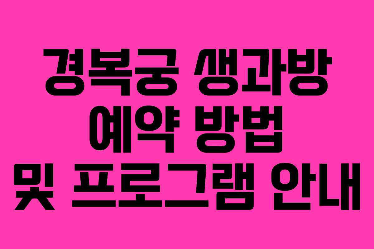 조선 왕실의 전통 디저트를 직접 체험할 수 있는 특별한 기회인 경복궁 생과방이 2026년에도 많은 이들의 기대를 모으고 있습니다. 생과방은 경복궁 내 소주방에 위치해 있으며, 조선시대 왕과 왕비의 다과를 준비하던 역사적인 공간입니다. 매년 빠른 매진으로 화제가 되고 있는 이 프로그램은 2026년에도 많은 이들에게 사랑받을 것입니다. 본 글에서는 생과방의 예약 방법, 운영 일정, 프로그램 구성, 오시는 길 등의 정보를 자세히 정리하였습니다.