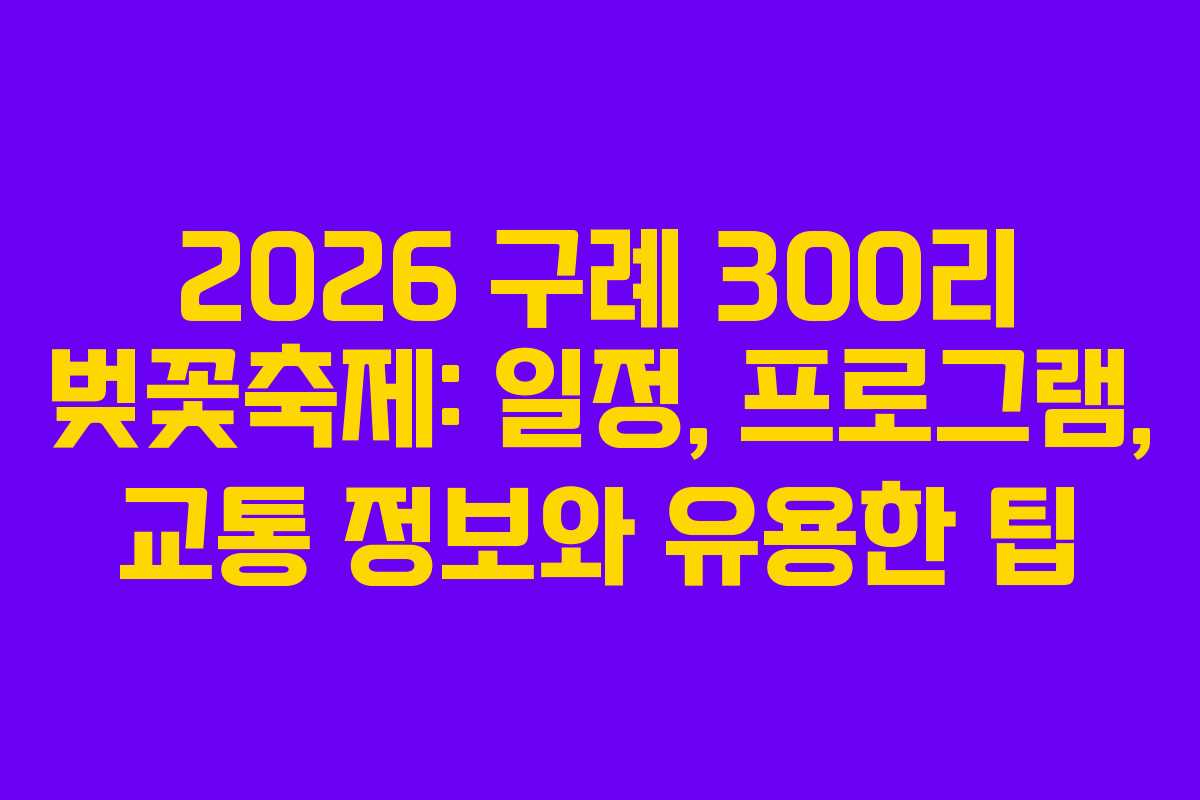 2026 구례 300리 벚꽃축제는 전라남도의 봄을 대표하는 행사로, 아름다운 벚꽃을 즐길 수 있는 다양한 프로그램과 볼거리를 제공합니다. 본 글에서는 축제 일정, 프로그램 내용, 주차 및 교통 정보 등 방문 전 알아야 할 필수 정보를 정리했습니다.