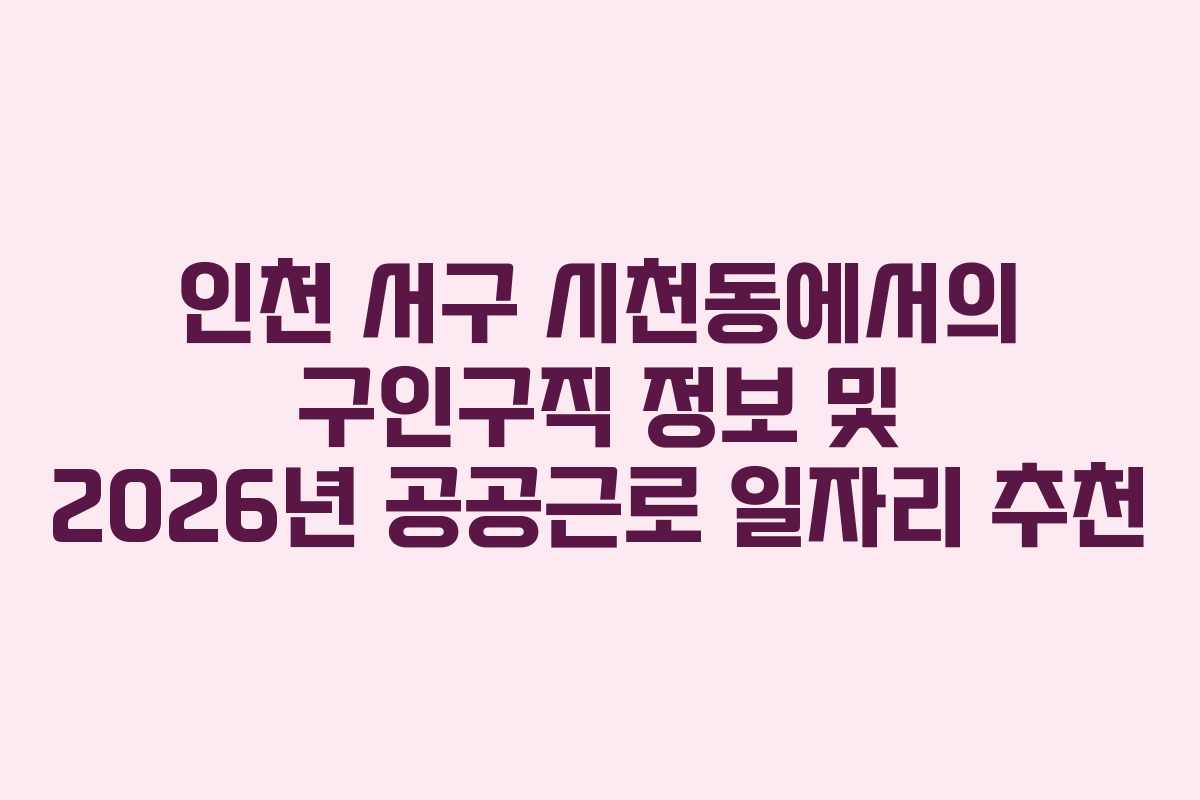 인천 서구 시천동에서 구인구직 정보를 알아보는 것은 매우 유용한 활동입니다. 지역 내에서 다양한 일자리 기회가 제공되며, 특히 2026년에는 공공근로 프로그램이 활성화되어 많은 분들에게 도움이 될 것입니다. 아래에서는 구체적인 구인구직 정보와 추천 일자리를 안내하겠습니다.