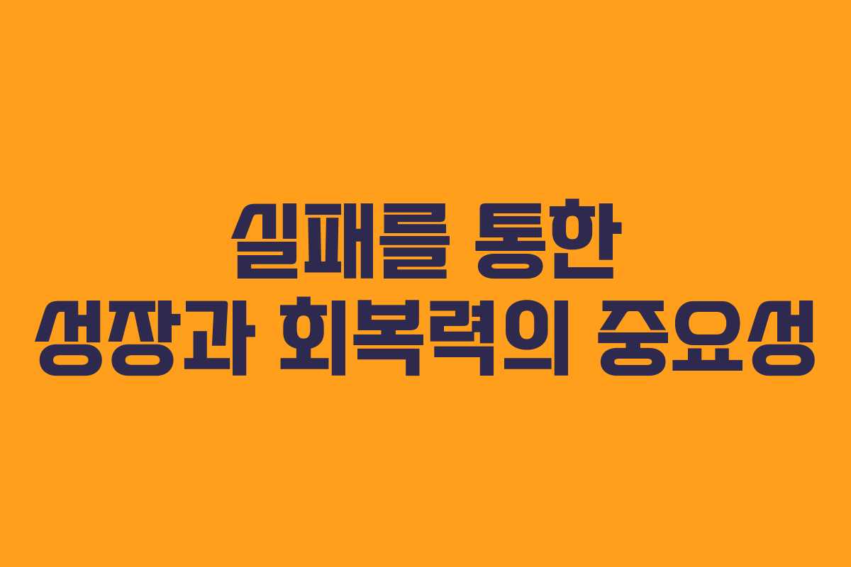 실패는 우리가 더 나은 방향으로 나아가기 위한 필수적인 경험입니다. 실패를 통해 우리는 어떤 점이 부족했는지를 깨닫고, 이를 개선하기 위해 노력할 수 있습니다. 또한, 실패는 회복력을 키우는 데 큰 도움이 됩니다.