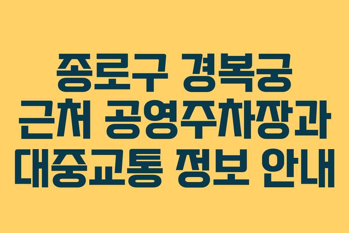 종로구에는 경복궁을 찾는 관광객을 위한 여러 공영주차장이 있다. 이들 주차장은 대중교통과의 접근성이 뛰어나며, 혼잡한 도로를 피할 수 있는 좋은 방법이다. 광화문 S타워 주차장과 세종문화회관 주차장이 근처에 있어 필요 시 이용할 수 있다.