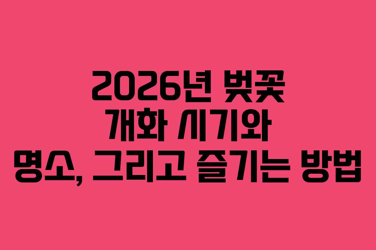 봄의 기운이 느껴지는 2026년, 벚꽃이 만개할 시기가 다가오고 있다. 매년 돌아오는 이 시기마다 많은 사람들이 벚꽃을 즐기기 위해 나들이를 계획하고, 그 중에서도 벚꽃 명소를 찾는 것이 가장 큰 고민이다. 이번 글에서는 2026년 벚꽃 개화 예상 시기와 주요 명소, 그리고 벚꽃 나들이를 더욱 즐길 수 있는 방법에 대해 알아보자.