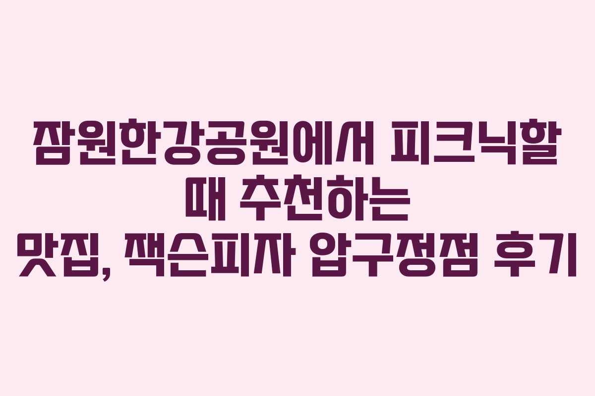 잠원한강공원은 도심 속에서 자연을 만끽할 수 있는 최적의 장소로, 주말에 친구나 가족과 함께 피크닉을 즐기기에 더할 나위 없이 좋은 곳이다. 이곳에서 피크닉을 계획하고 있다면 함께 방문하기 좋은 맛집으로 잭슨피자 압구정점을 추천한다. 최근에 다녀온 후기를 공유하고자 한다.