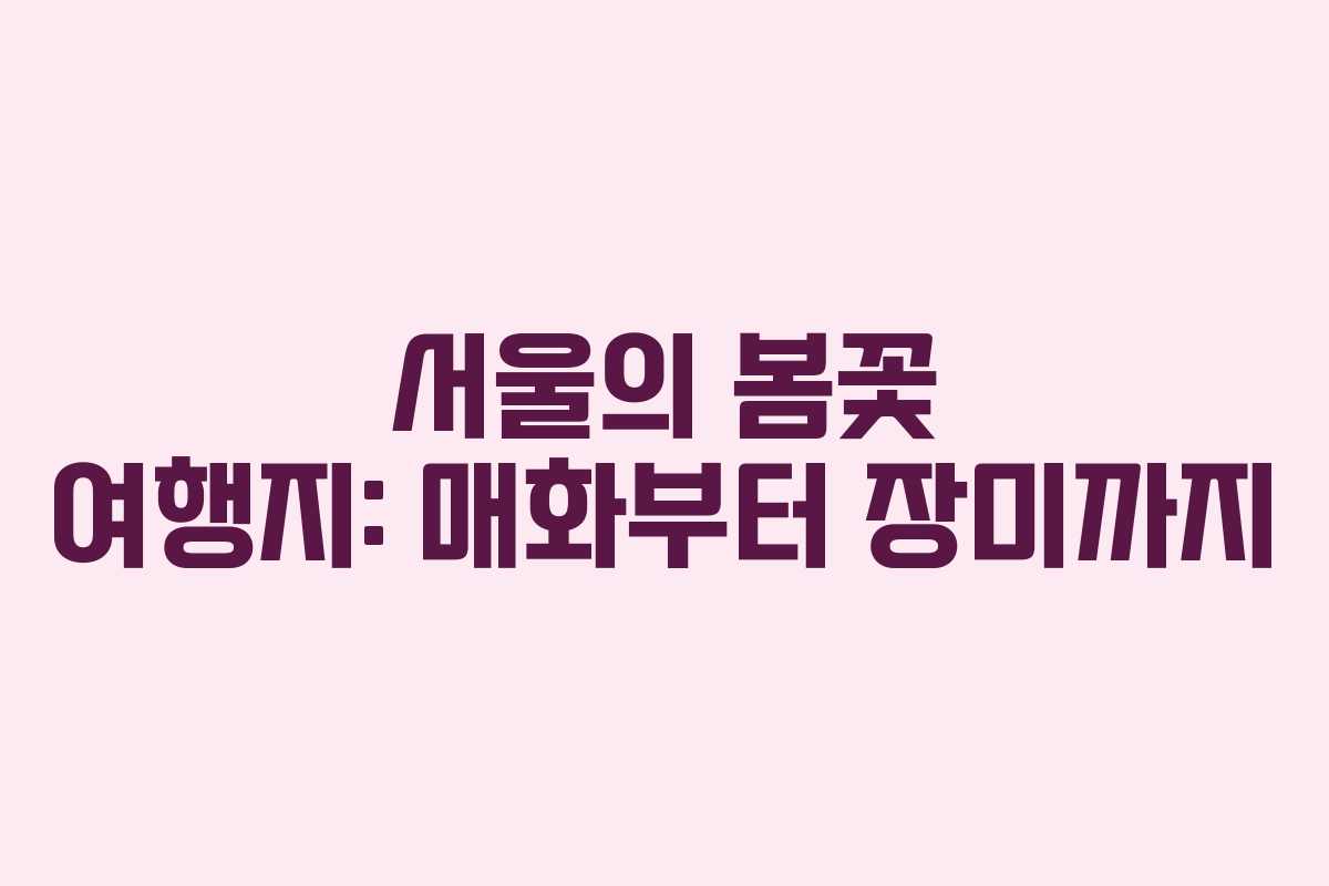 서울에서는 매화 외에도 벚꽃, 진달래, 철쭉 등이 유명합니다. 각 꽃의 개화 시기에 맞춰 여행 계획을 세우면 좋습니다.