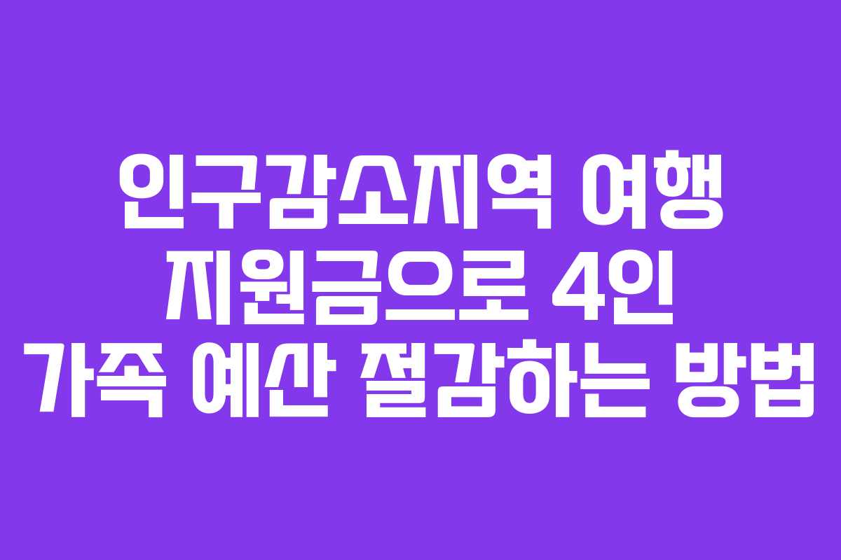 가족과 함께하는 여행은 언제나 기대되는 일이지만, 물가 상승으로 인해 부담이 늘어나는 현실에 많은 이들이 고민하고 있습니다. 특히, 인구감소지역에 대한 여행 지원금 제도를 활용하면 상당한 비용을 절감할 수 있습니다. 이번 글에서는 2026년 기준으로 인구감소지역 여행 지원금을 통해 4인 가족이 실제로 절감할 수 있는 예산 절감 방법을 살펴보겠습니다.