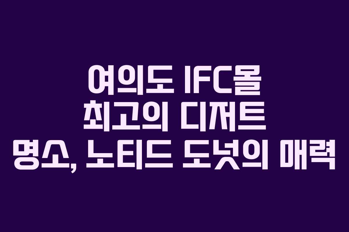 여의도 IFC몰 내에서 노티드 도넛은 단순한 디저트 이상의 경험을 제공합니다. 다양한 메뉴와 아기자기한 인테리어, 그리고 특별한 이벤트가 함께 어우러져 있어, 누구나 즐길 수 있는 공간입니다. 한 번 방문해 보신다면, 다시 찾게 될 것입니다. 디저트를 좋아하는 이들이라면 꼭 한 번은 경험해보아야 할 장소입니다.