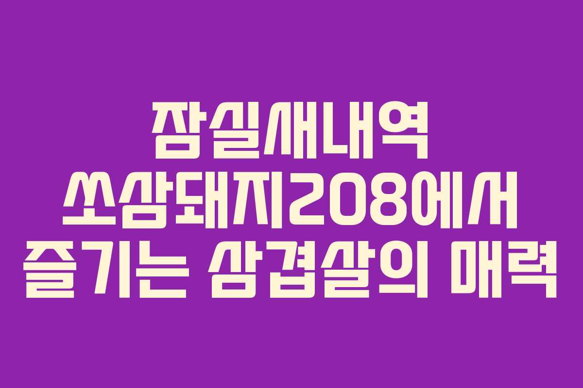 최근 방이동의 먹자골목에 자주 발길을 옮기고 있습니다. 이곳은 올림픽공원을 거닐며 여유롭게 산책한 후, 맛있는 음식을 즐기기에 완벽한 장소입니다. 그 중에서도 잠실새내역의 쏘삼돼지208은 삼겹살을 사랑하는 이들에게 최적의 선택지로 자리 잡았습니다. 오늘은 이곳에서의 특별한 저녁 시간을 함께 나누고자 합니다.