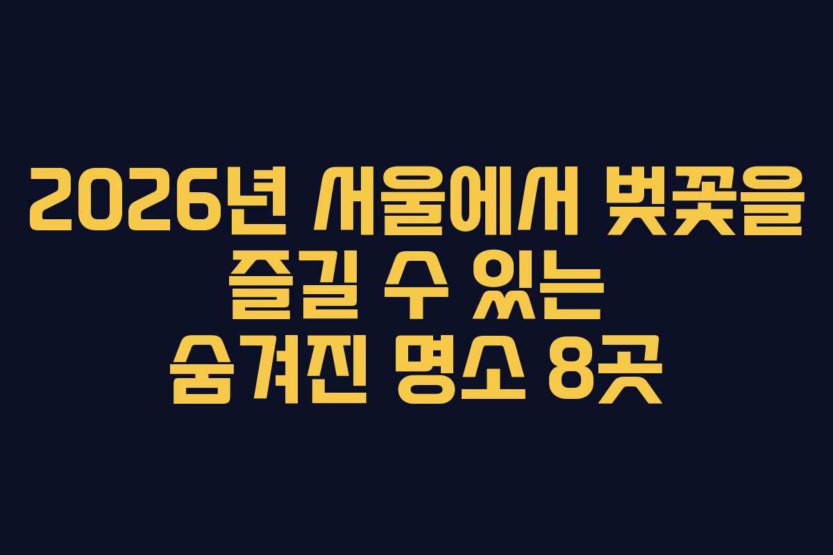 2026년 서울의 벚꽃은 지난 몇 년과는 다른 특별한 경험이 될 것입니다. 숨겨진 명소에서 여유롭게 벚꽃을 감상하며 즐거운 시간을 보내시기 바랍니다.