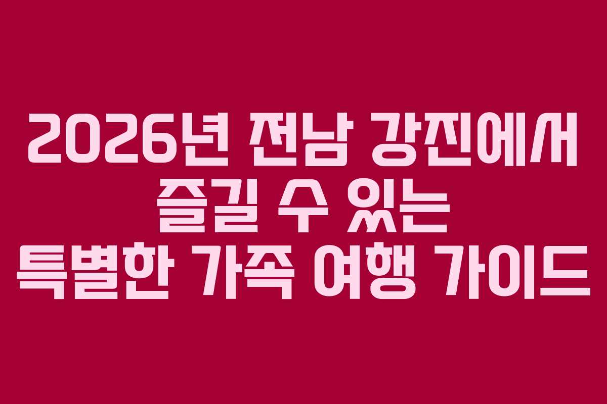 강진은 가족 단위 여행객들에게 매우 매력적인 장소이다. 2026년 현재, 다양한 할인 혜택과 함께 자연과 문화를 동시에 체험할 수 있는 기회를 제공하고 있다. 이번 기회를 통해 가족과 함께 소중한 추억을 쌓고, 강진의 아름다움을 만끽할 수 있기를 바란다.