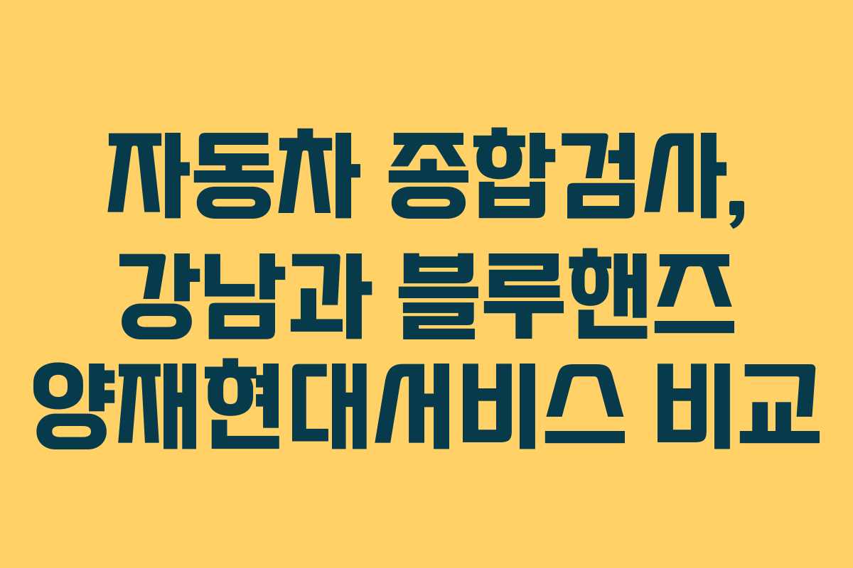 자동차 종합검사는 차량 소유자에게 필수적인 절차로, 매번 새로운 경험이 있습니다. 이번에는 강남자동차검사소와 블루핸즈 양재현대서비스에서의 검사 경험을 공유하며, 각 검사소의 장단점을 살펴보겠습니다. 2026년 기준으로 검사소의 위치, 비용, 대기 시간 등을 비교해보며, 다음 자동차 검사를 준비하는 분들에게 도움이 될 수 있는 정보를 제공하고자 합니다.