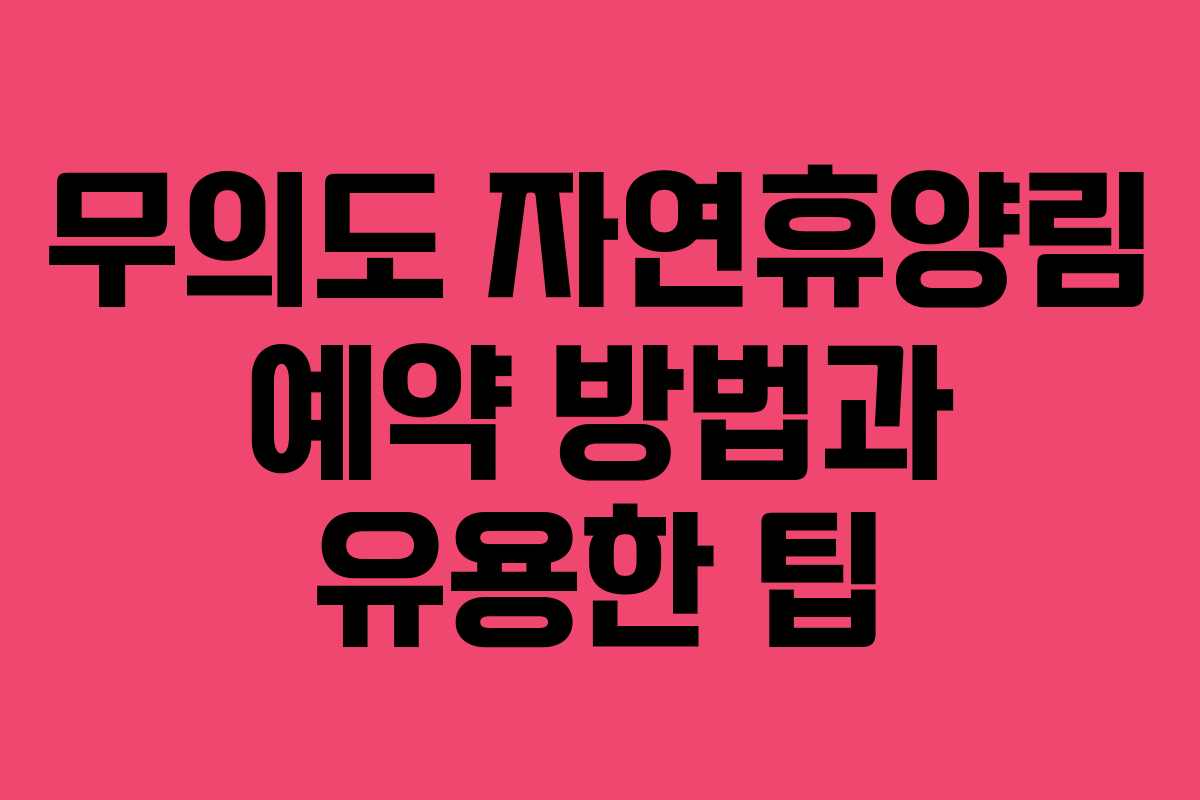 무의도 자연휴양림은 아름다운 자연 환경 속에서 편안한 휴식을 제공하는 곳으로, 예약이 쉽지 않은 제도적 특성을 가지고 있습니다. 이 글에서는 무의도 자연휴양림의 예약 방법에 대한 포괄적인 정보를 제공하여, 여러분이 원활하게 예약을 진행할 수 있도록 돕겠습니다. 특히 2026년 기준으로 최신 정보와 유용한 팁을 담았습니다.