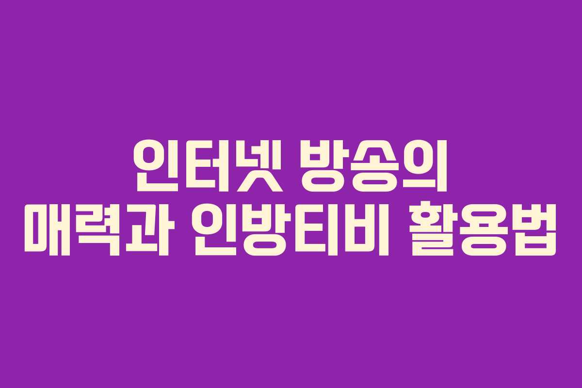 제가 자주 이용하는 인터넷 방송 플랫폼은 인방티비입니다. 이전에는 킹콩티비를 사용했지만, 개인적으로 인방티비가 제 취향에 더 맞는 것 같아 요즘에는 이곳을 자주 찾고 있습니다. 오늘은 제가 인방티비를 선택한 이유들을 구체적으로 살펴보겠습니다.