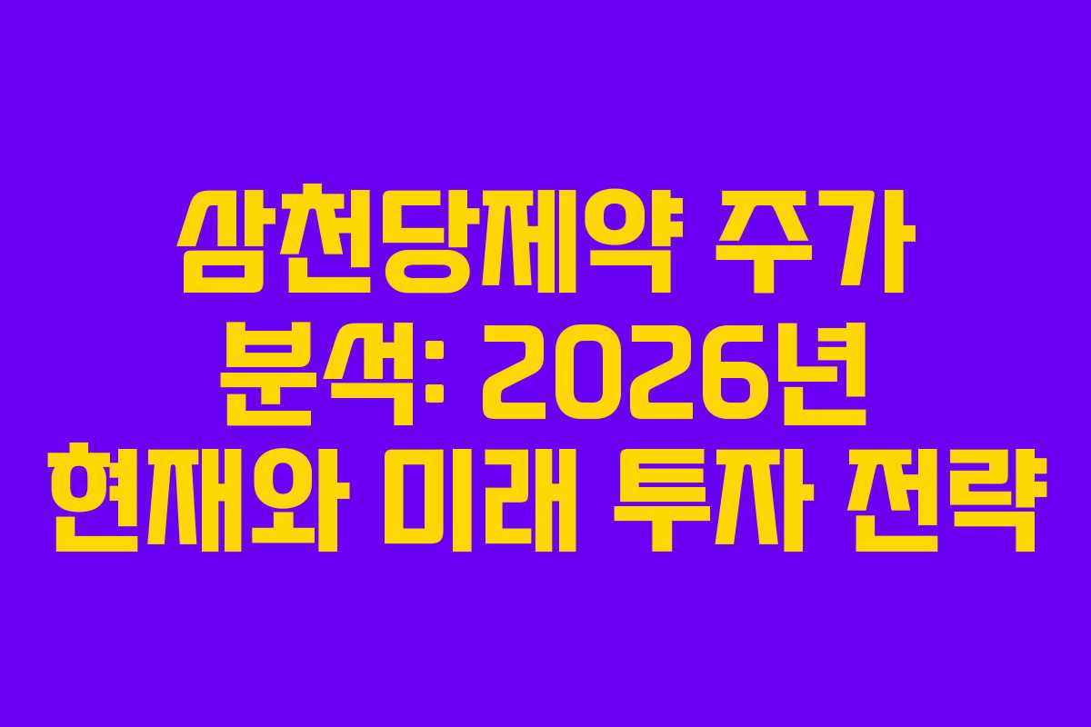 삼천당제약의 현재 주가 및 시가총액 현황: 2026년 기준 실태