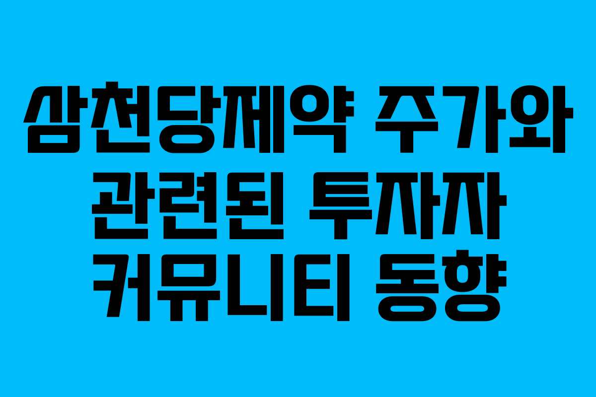 이번 글을 통해 삼천당제약의 주가 동향과 투자자 커뮤니티의 반응을 살펴보았습니다. 앞으로 투자자들은 정보를 신중하게 분석하고, 보다 현명한 투자 결정을 내리기 위해 노력해야 할 것입니다.
