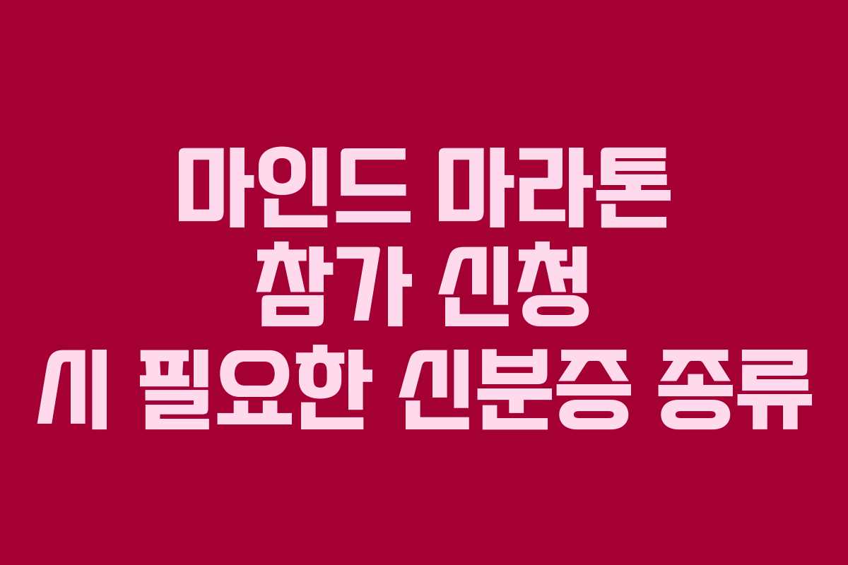 마인드 마라톤은 건강과 정신적 웰빙에 대한 관심이 커짐에 따라 많은 사람들이 참여하고 있는 인기 있는 스포츠 이벤트입니다. 이와 함께 마라톤에 참가하기 위해서는 몇 가지 필수 요건이 있으며, 그 중 하나가 신분증입니다. 이번 글에서는 마인드 마라톤 참가 시 필요한 신분증 종류와 신청 절차에 대해 자세히 알아보겠습니다.